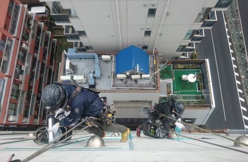 『日本に1社くらいこんな自由な会社があってもいいんじゃない?』を合言葉に、ロープアクセス技術による外壁工事、外壁調査、補修、漏水、鳥害、中・小規模修繕をおこなう高所作業専門業者です。